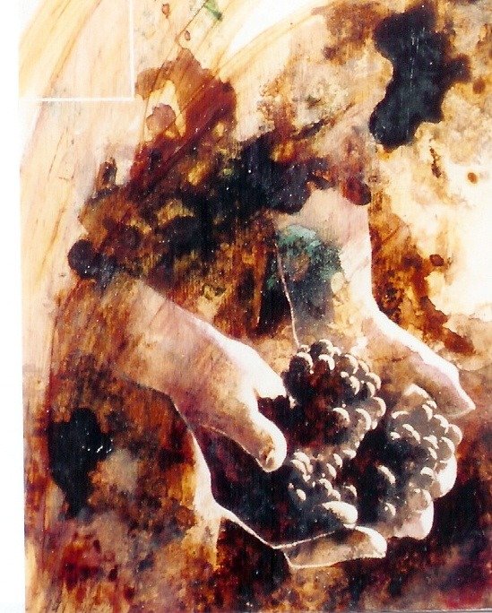 Exposition de tableaux peints à la lie de vin.